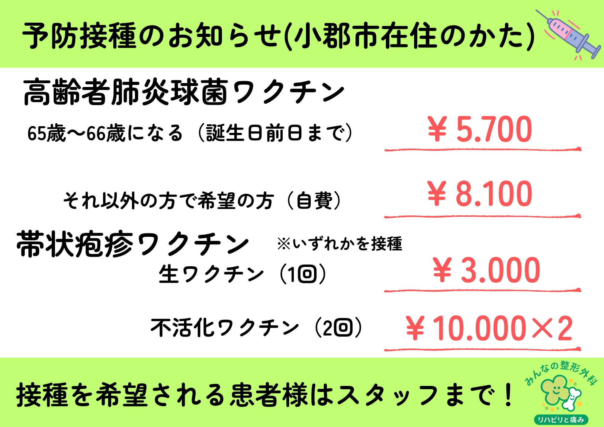 当院では、4月より予防接種が受けられるようになりました。